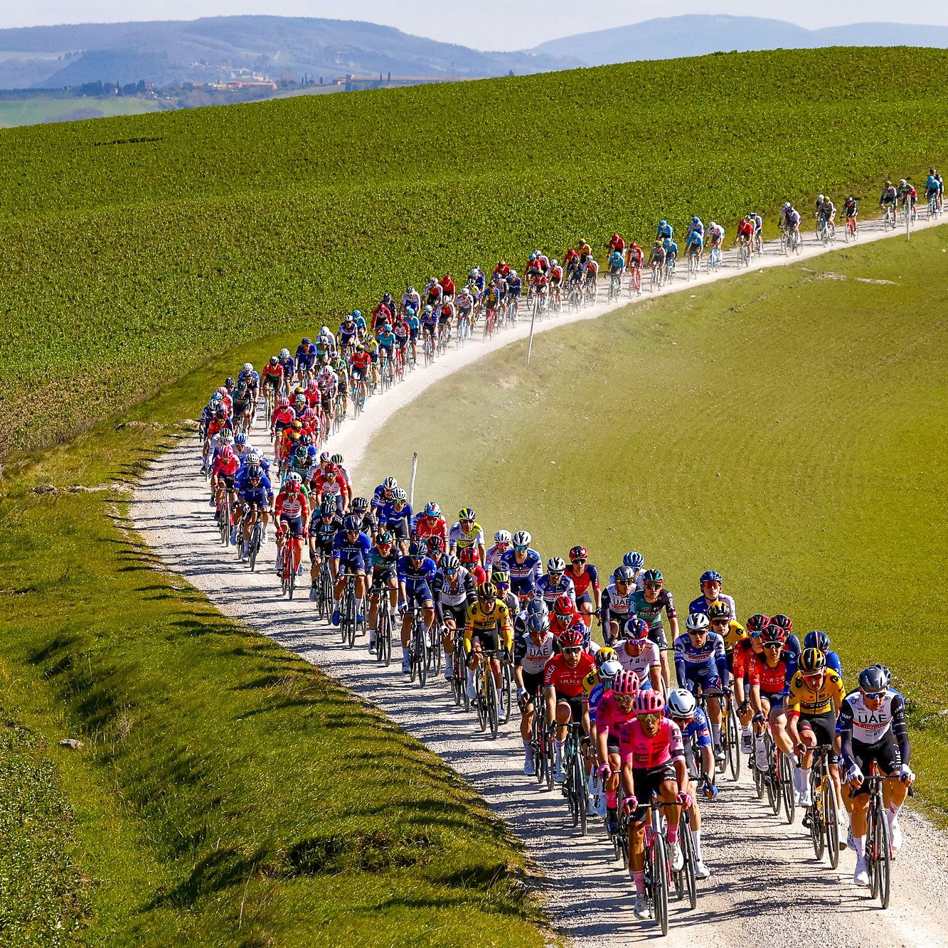This 7-day tour takes you through some of Tuscany’s most captivating landscapes, including the Siena and Chianti region, the rolling hills of the Val d’Orcia and Crete Senesi, and the classic white roads made famous by Strade Bianche and L’Eroica. The journey also includes the Tuscan coastline, the Versilia, where we’ll experience the Giro d’Italia live, positioning ourselves along the individual time trial between Viareggio and Massa, the only chance to watch the best riders race against the clock during the race.